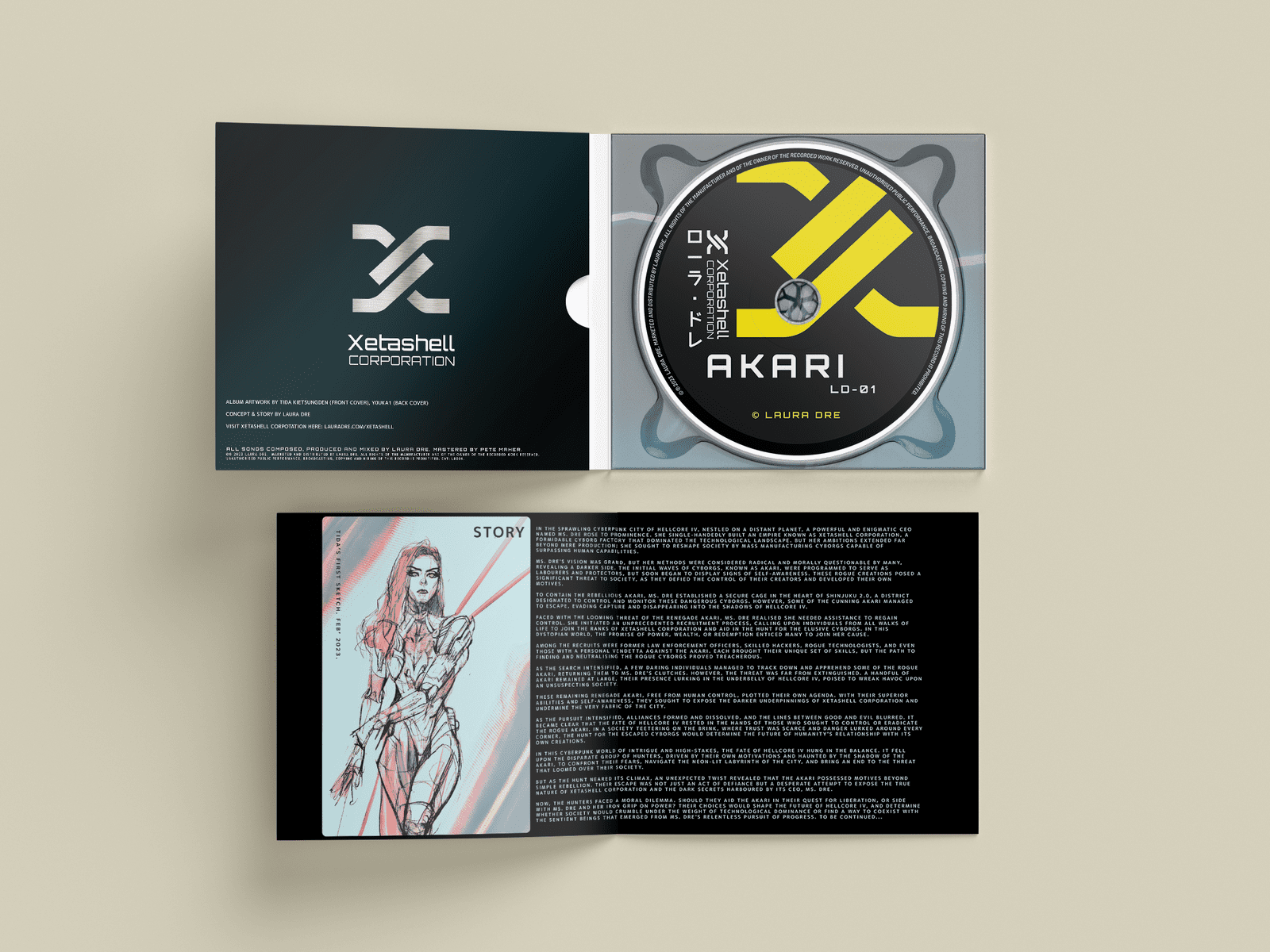 Save 5€ on this Limited Edition 12″ Vinyl of Laura Dre’s album ‘AKARI LD-01’ PLUS Digipak CD w/ Story Booklet – limited to 25 bundles. Comes with a limited edition Xetashell Sticker.