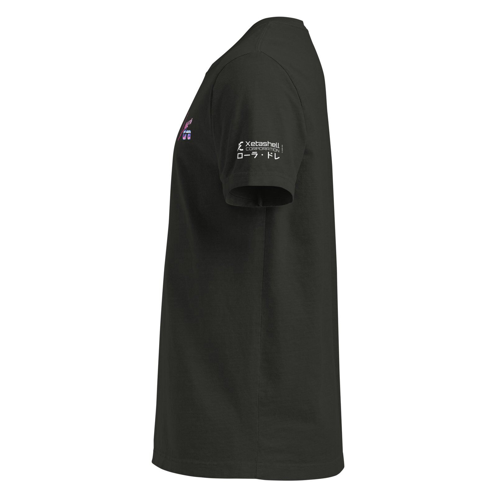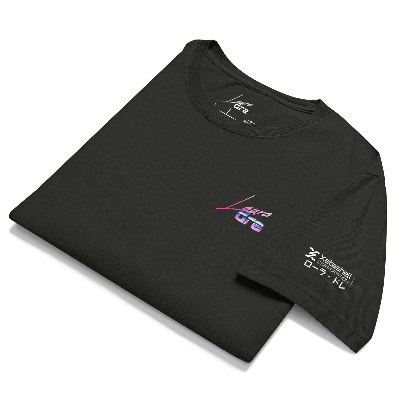 Features a small Laura Dre logo on the chest and Xetashell Corporation tag detail on the sleeve. Worn by lower-deck techs and off-duty officers in Shinjuku 2.0.